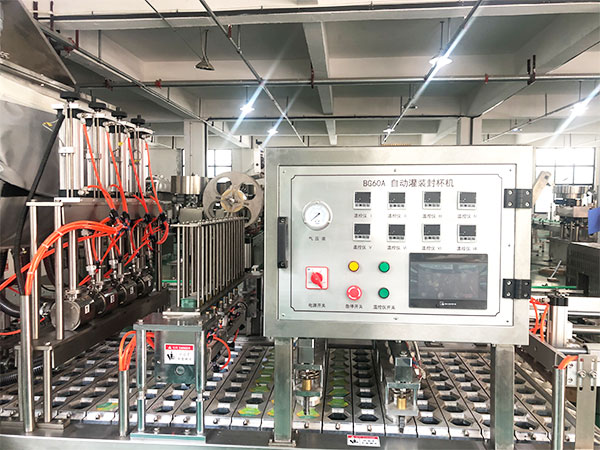 自动化盒装火锅底料灌装封口机适用于各种塑料杯盒的封口,自动完成灌装和封口的作业,切割、打标、紫外线杀菌、滴杯杀菌等工序,并且本公司还可根据顾客的特殊要求定制。现在的经济发展大部分呈现在人们对于科技创新的需求,速食酱料灌装封口机符合现代都市年轻人对于速食酱料的需求量,自动化盒装火锅底料灌装封口机从自动落盒、自动灌装、光电管密封容器跟踪卷筒薄膜的设计,来确保薄膜在容器盖中的装置,速食酱料灌装封口机的转台步进运行的带行齿轮减速机的伺服电机,旋转速度很快,避免物料飞溅,伺服电机平稳,可以准确的保证定位的准确性,自动化盒装火锅底料灌装封口机的参数可以自由调整,并且应用范围广,其操作也是易学易懂,速食酱料灌装封口机使用螺旋分离亚和技术,为避免盒子损坏变形,自带真空吸盘,可引导盒子准确入模,自动化盒装火锅底料灌装封口机是由PC板和带有保护操作者的安全开关,整体不锈钢和阳极氧化铝制成,确保可以在潮湿、蒸汽、油、酸和盐等恶食品厂环境中运行,整体机身可以接受水冲洗。